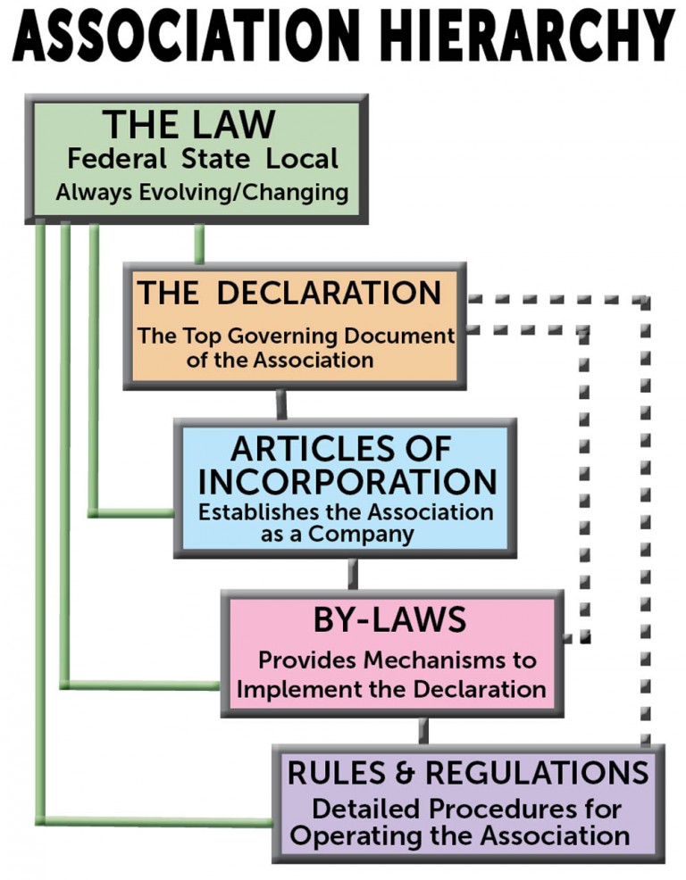 This diagram clarifies the important connections and ranking among our Association’s governing documents.